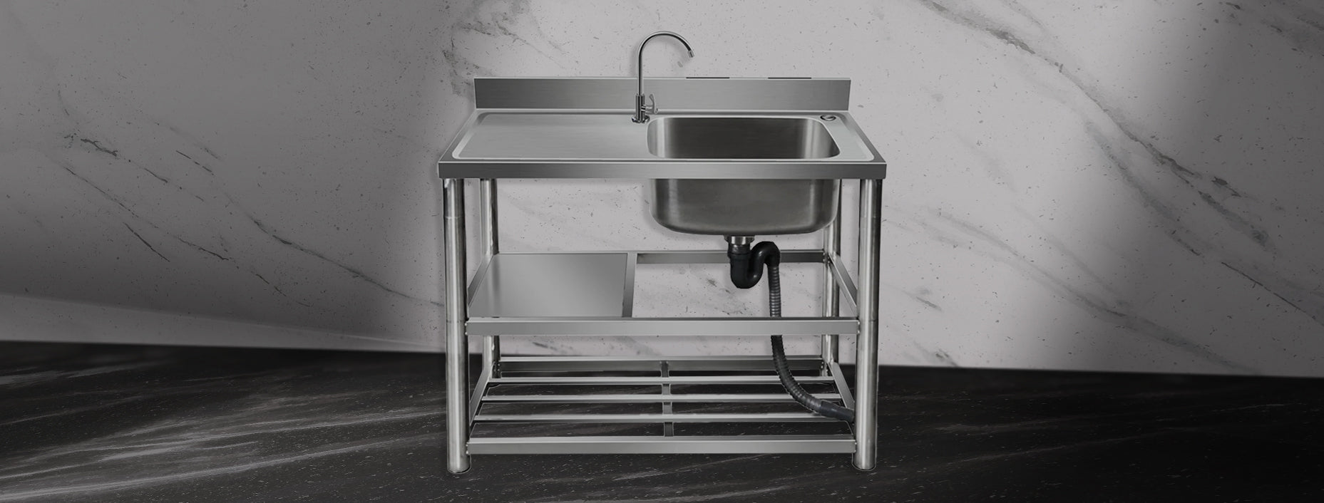 Freestanding Stainless Steel Bench and Sink - 120 x 50 x 80 cm